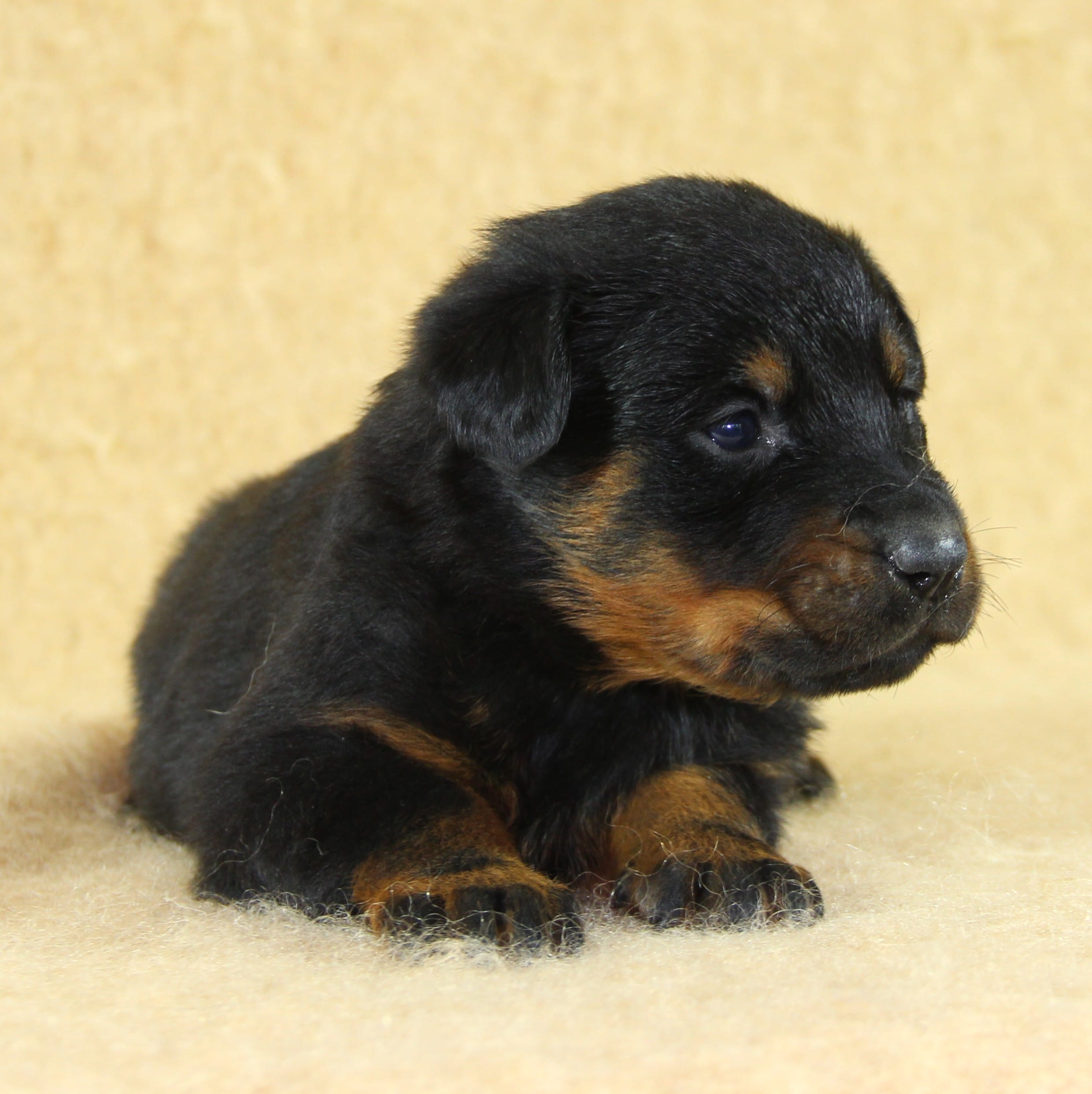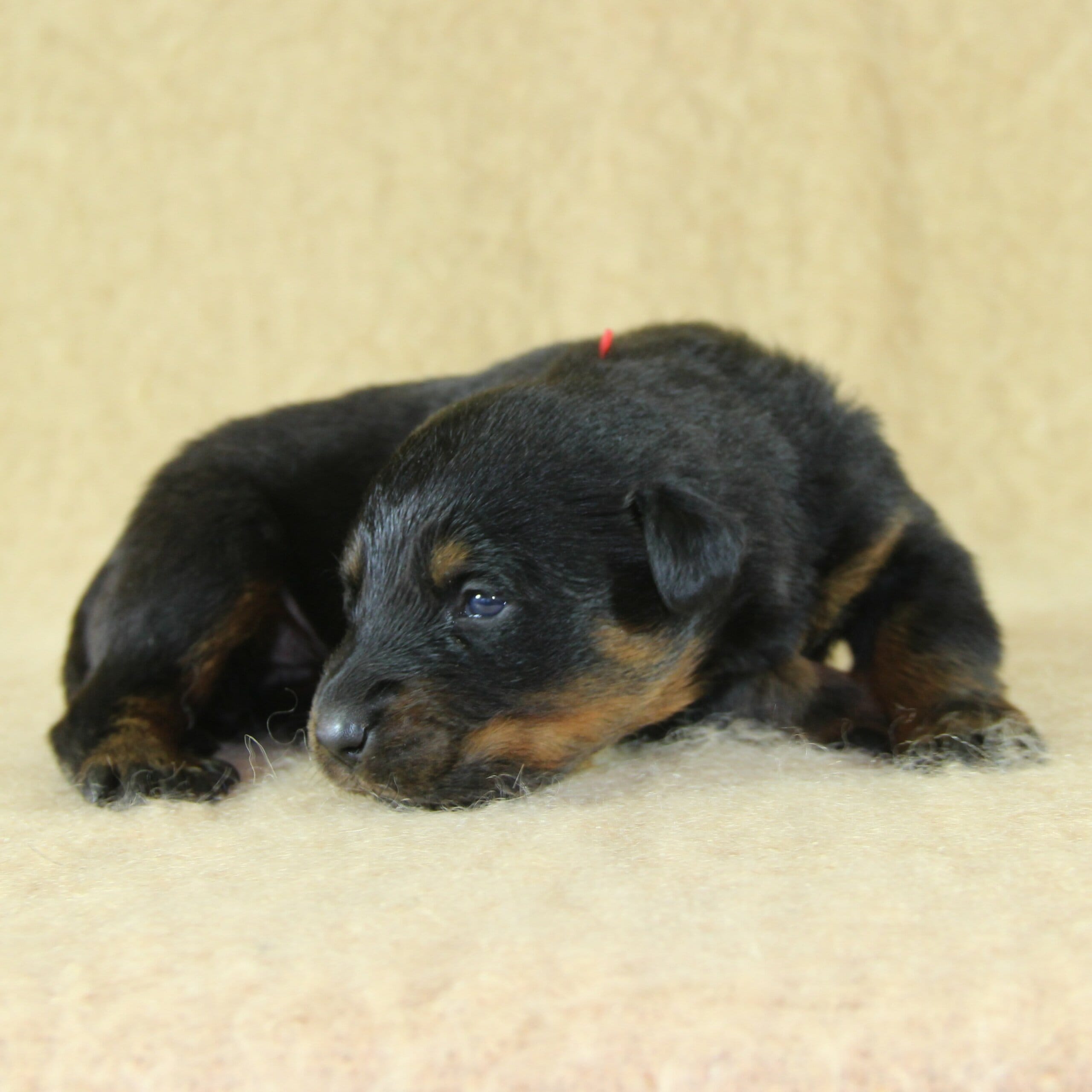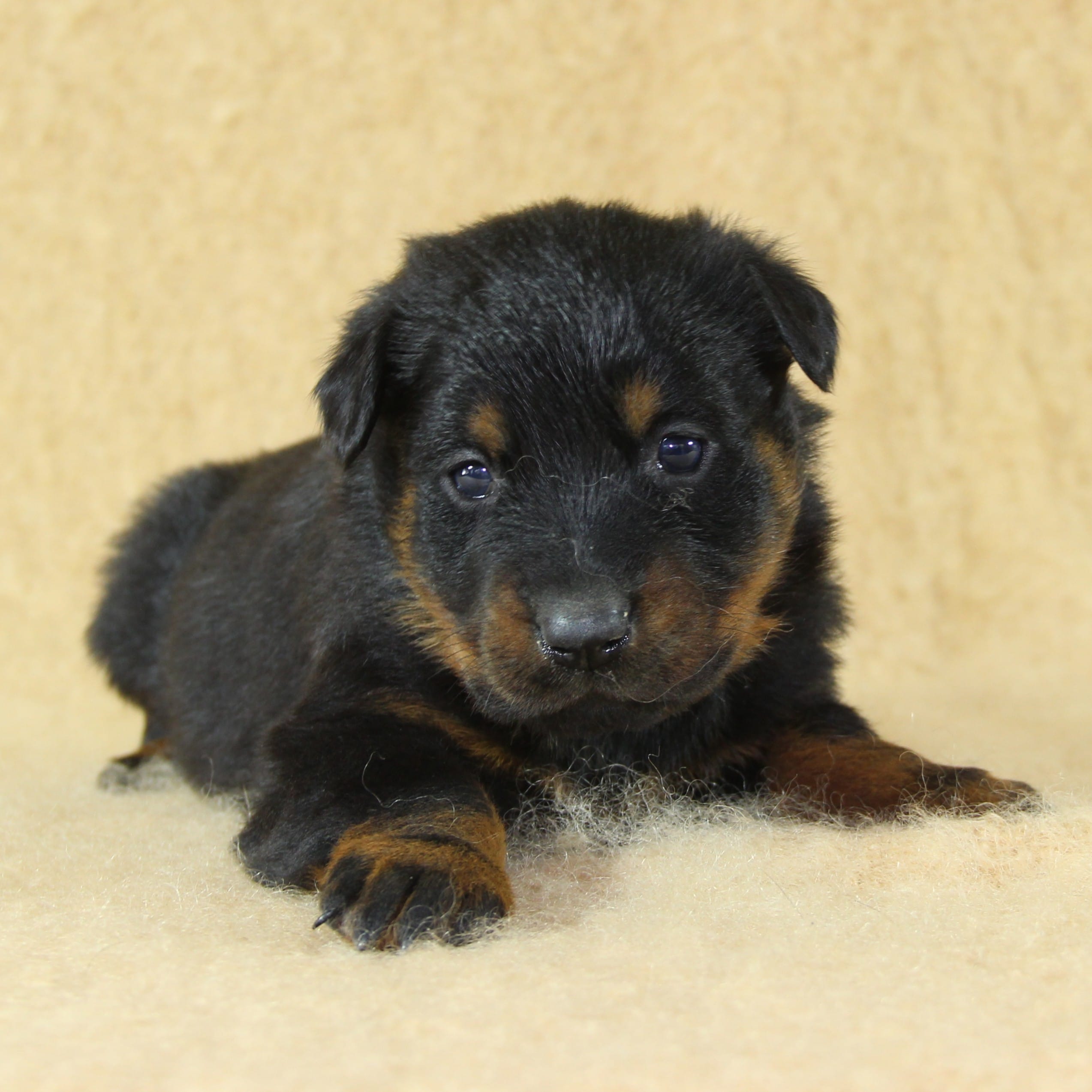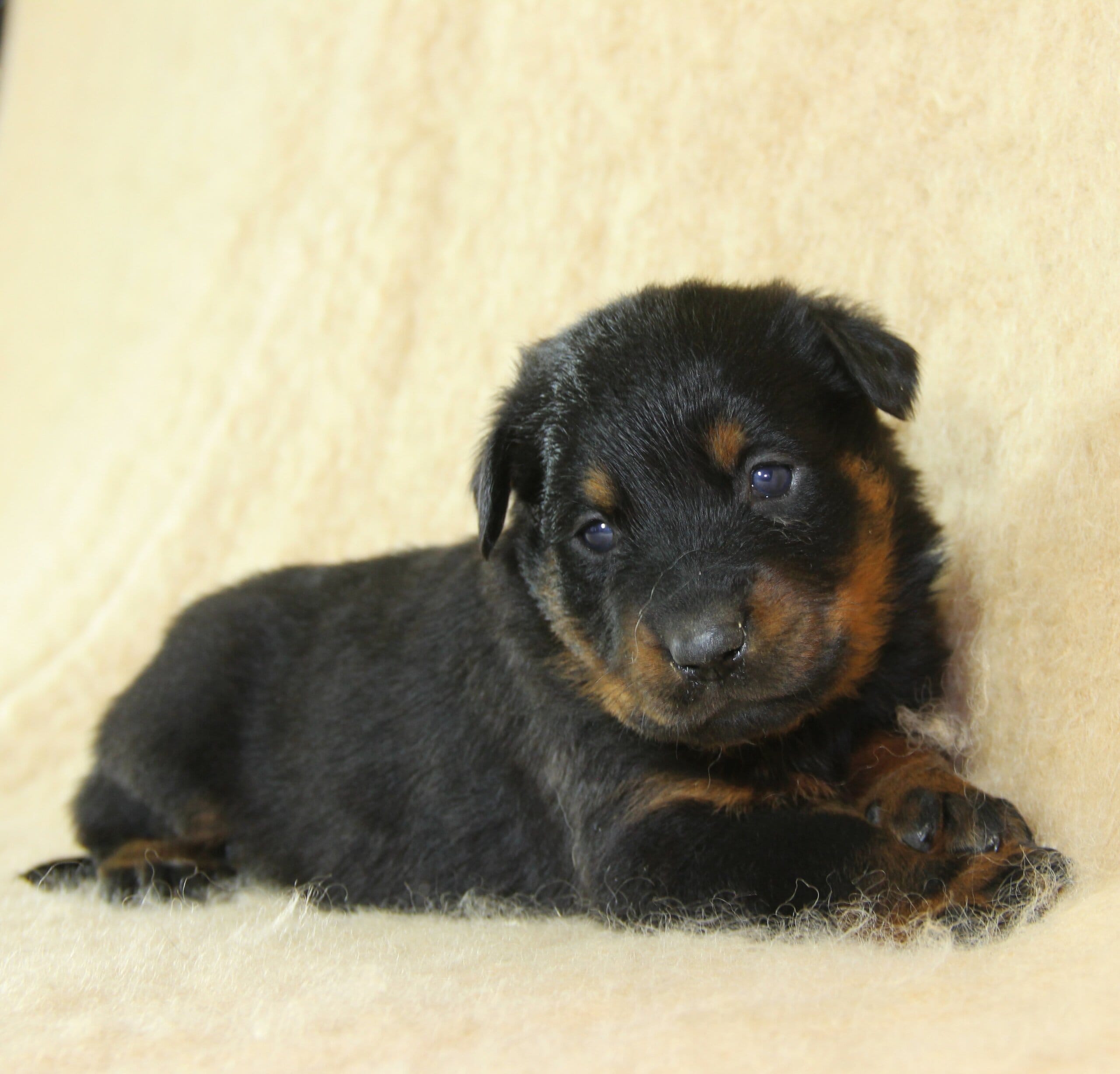Née le 23 février 2026, ce chiot femelle Beauceron est issu de la rencontre entre Unix de Sainte Pétronille et Ulane du Haras des Places, deux sujets confirmés aux origines soigneusement sélectionnées.