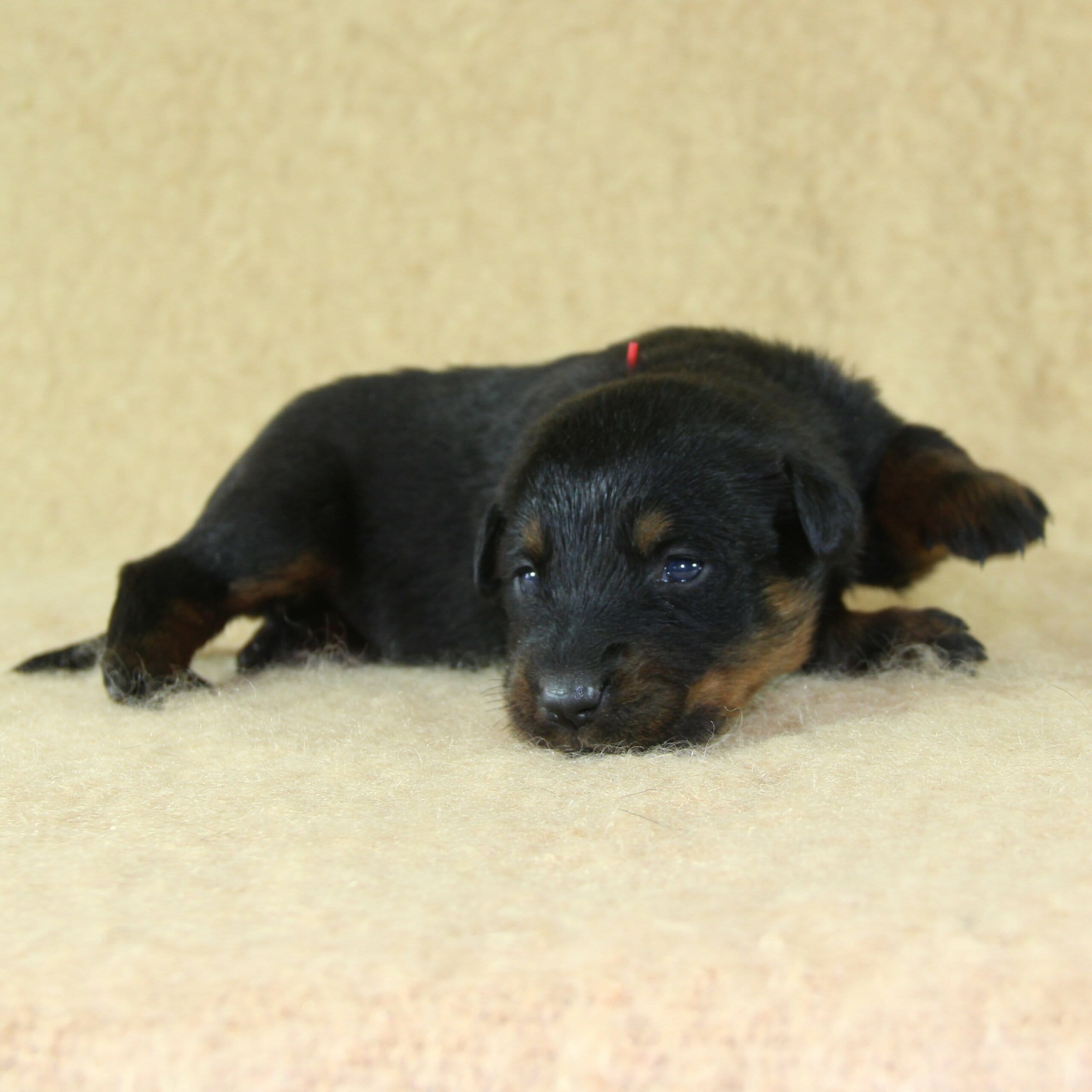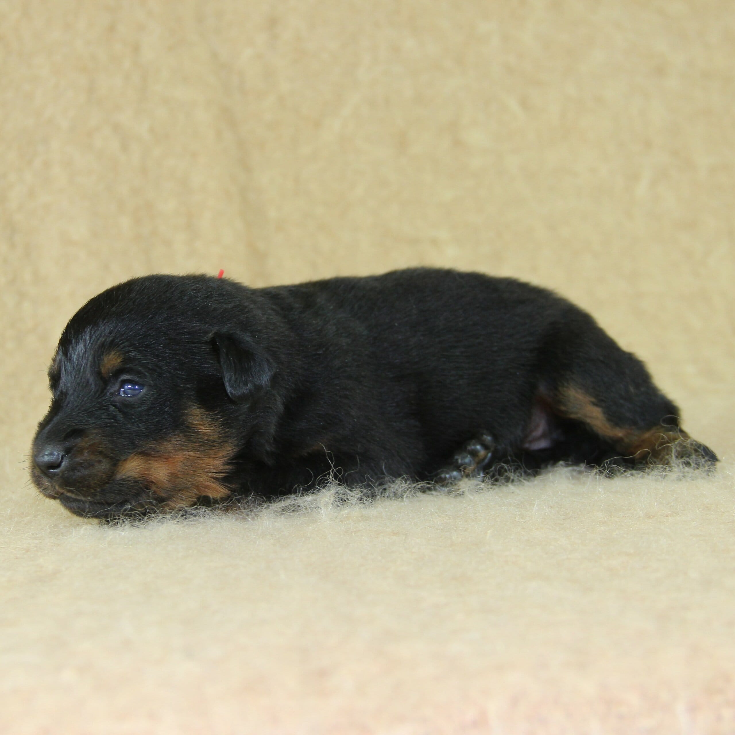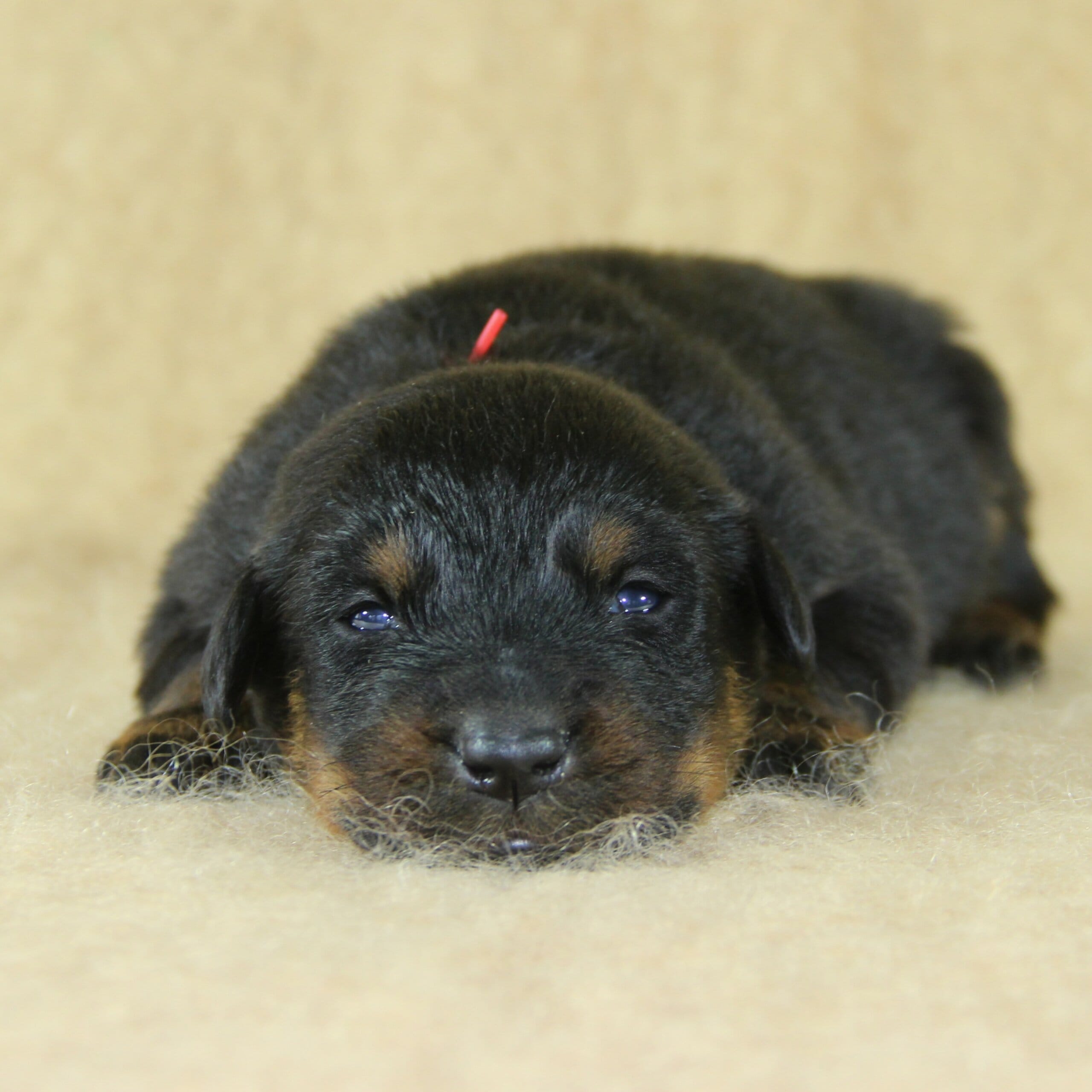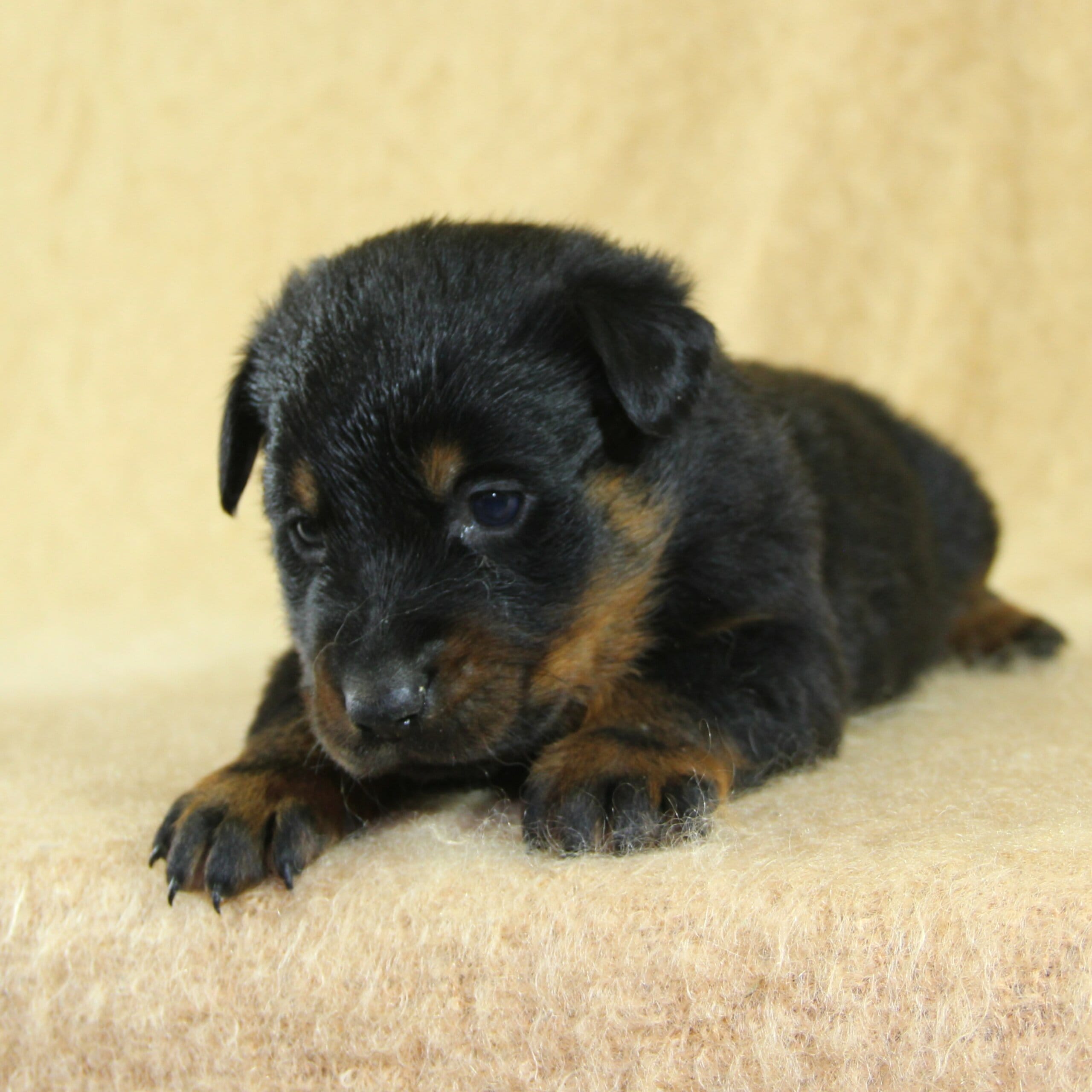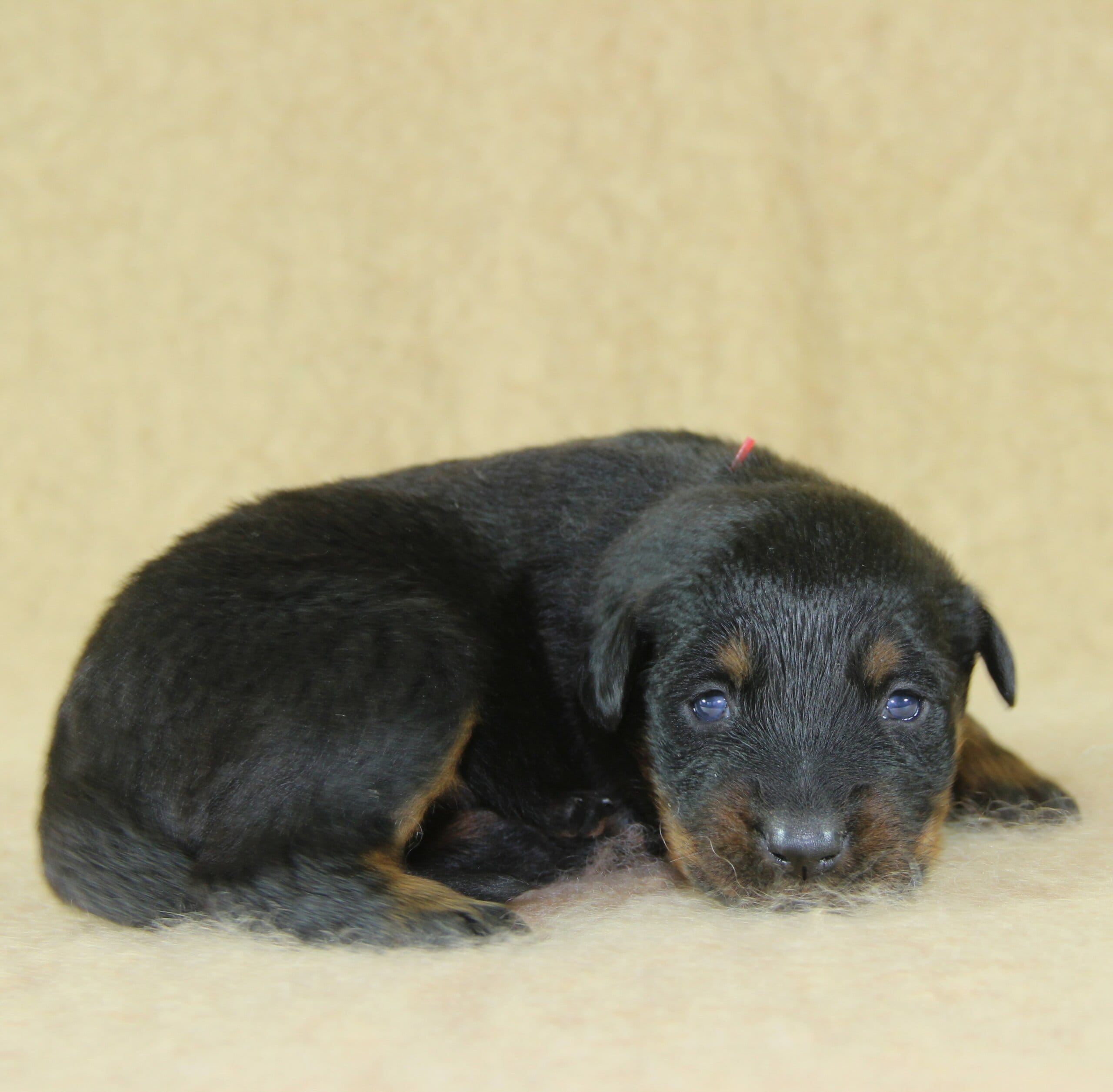 Née le 23 février 2026, ce chiot femelle Beauceron est issu de la rencontre entre Unix de Sainte Pétronille et Ulane du Haras des Places, deux sujets confirmés aux origines soigneusement sélectionnées.